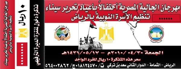 تكليف الأسرة النوبية  بتنظيم مهرجان الجالية المصرية لهذا العام ... تباع تذاكر المهرجان لدى ** جمعيات الجالية المصرية  ** مقر صندوق رعاية المصريين بالقنصلية والمربع  ** شركة رحاب مصر